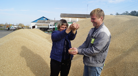 - Сегодня у нас на току 5643 тонны зерна нового урожая, - подводит предварительный итог жатвы главный агроном Владимир Горячев (на снимке с Татьяной Коваль). – Минувшая неделя немного подсушила колос, но нагрузка на сушилки не снизилась.