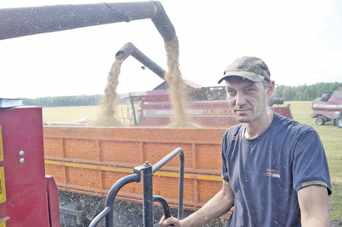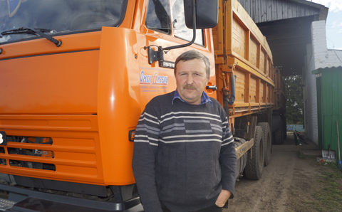 «Вести с полей» привозит Сергей Бандюк. Водитель директорской машины, он ежегодно садится за баранку КАМаЗа, и сейчас доставил 15 тонн овса.